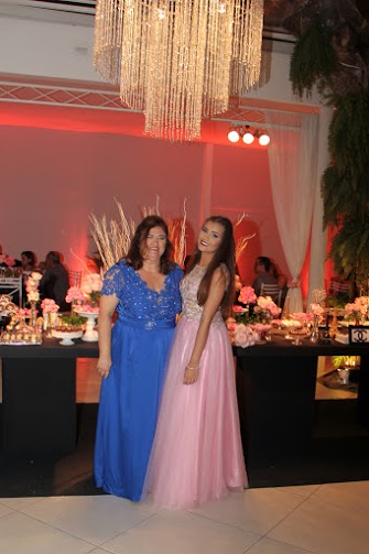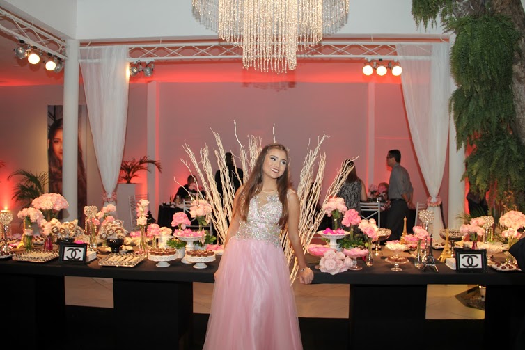 O 15 anos da Clara foi decorado nas cores rosa, preto e branco, Foi um para nós fazer parte desse grande dia!